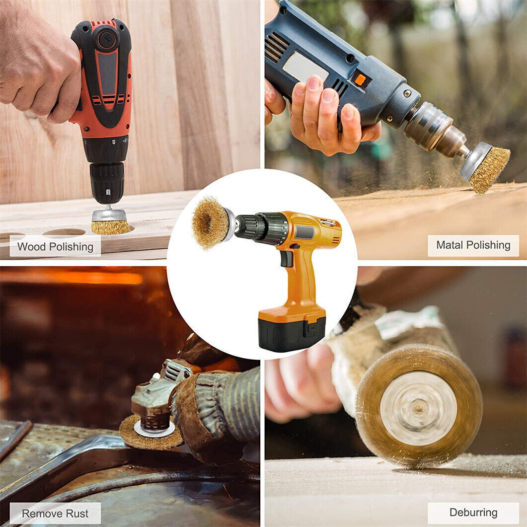 【Breite Anwendung】Diese Stahlbürste kann zur Oberflächenbehandlung von Nichteisenmetallen, Holz, Beton und Stein verwendet werden. Die Bohrdrahtbürste wird zum Entfernen von Rost, Polieren von Graten, Entfernen von Farbe, Beschichten, Schweißen, Entfernen von Krätze, Reinigen der Bootsoberfläche usw. verwendet.