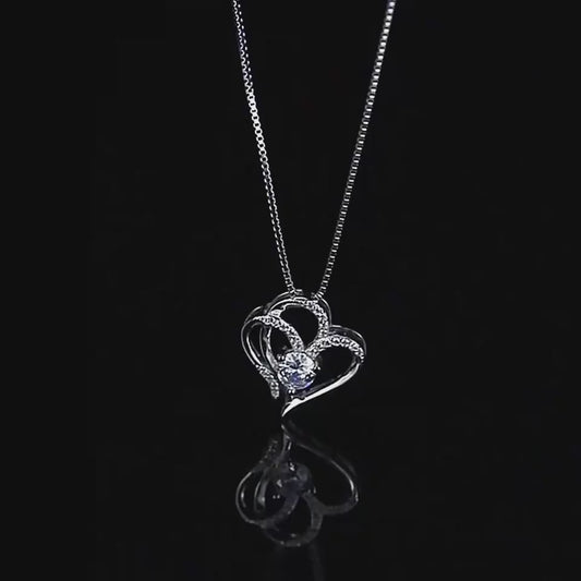 Double Love – Herz-Halskette mit Rhinestones & Zirkonia in Rosé- oder Weißgold